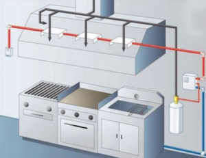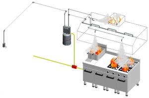 İşletme Mutfakları için davlumbaz söndürme sistemleri.